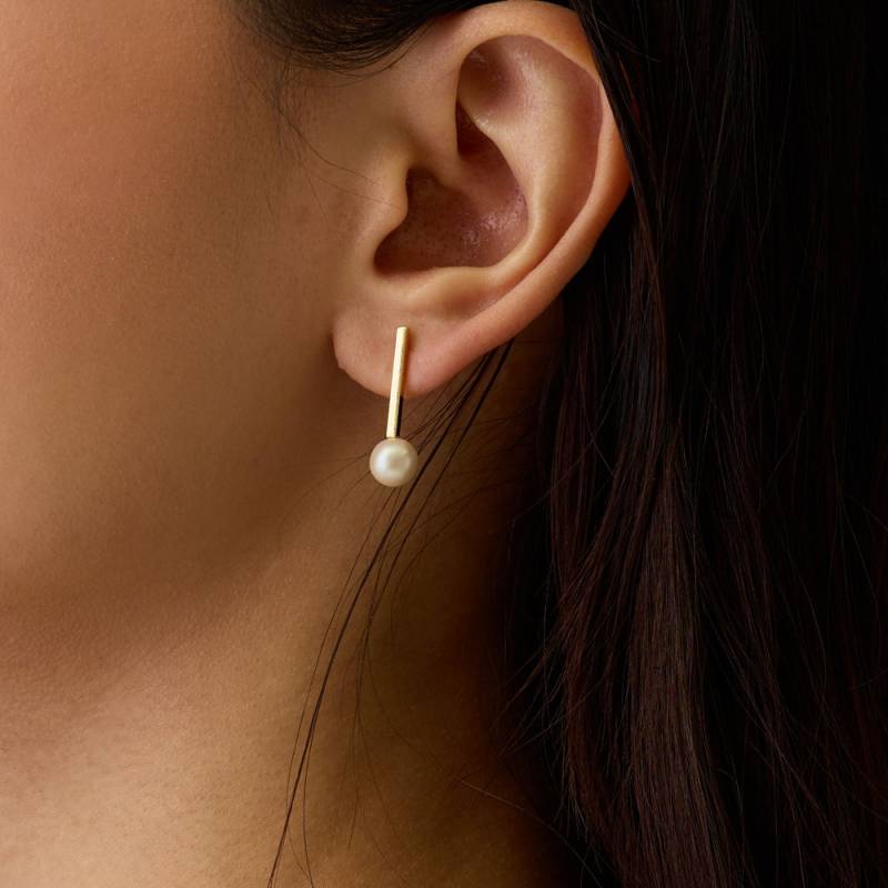 メタルバーが耳にフィットするワンポイントパールのメタルバーシンプルピアス