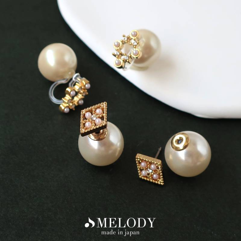 日本製 アラベスク パールキャッチ ピアス イヤリング ノンホールピアス 金属アレルギー対応