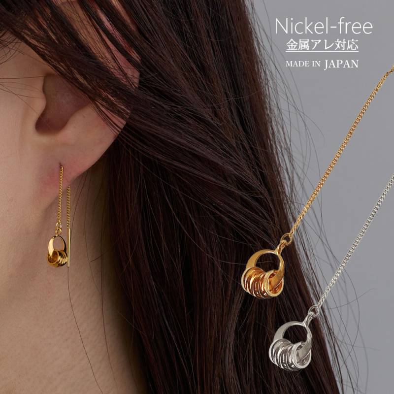 日本製 アメリカンピアス 5連 サークルモチーフチェーンピアス
