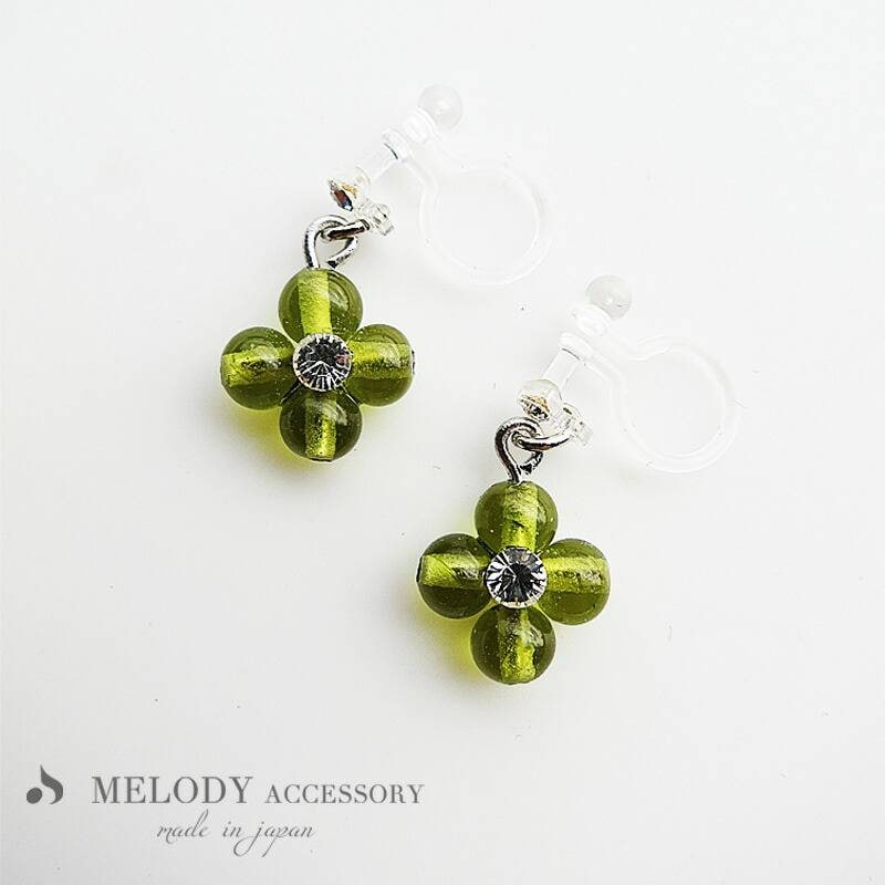 OUTLET 在庫処分 日本製 ビーズ フラワー 樹脂 ノンホールピアス
