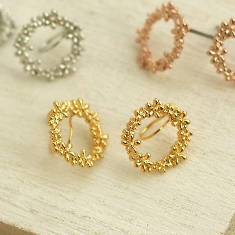 送料無料 日本製 可憐なフラワーのサークル ピアスイヤリング