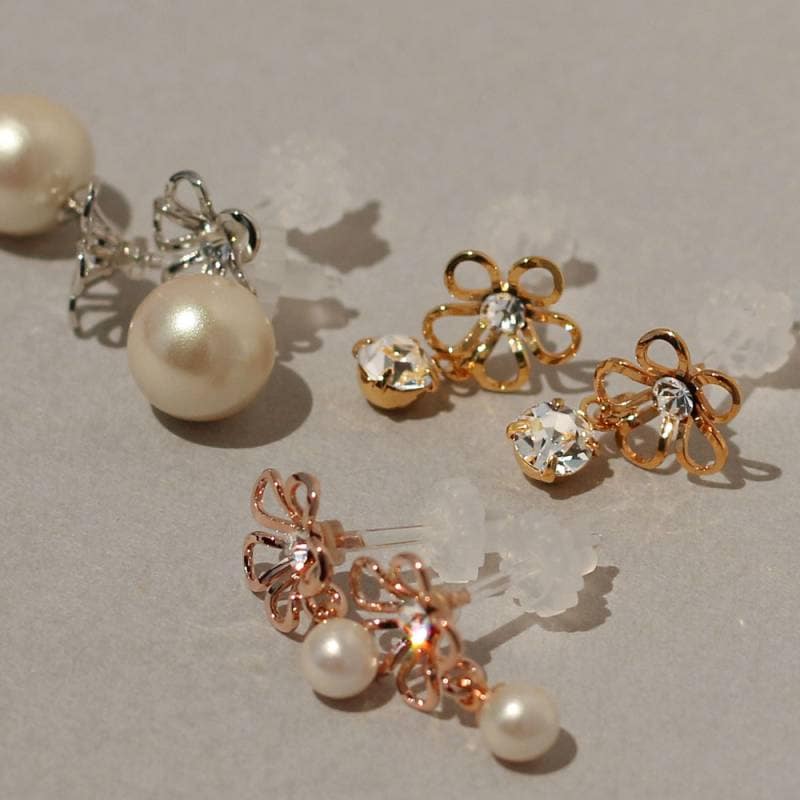 日本製 キャッチレス ビジュー パール フラワー フレンチフックピアス