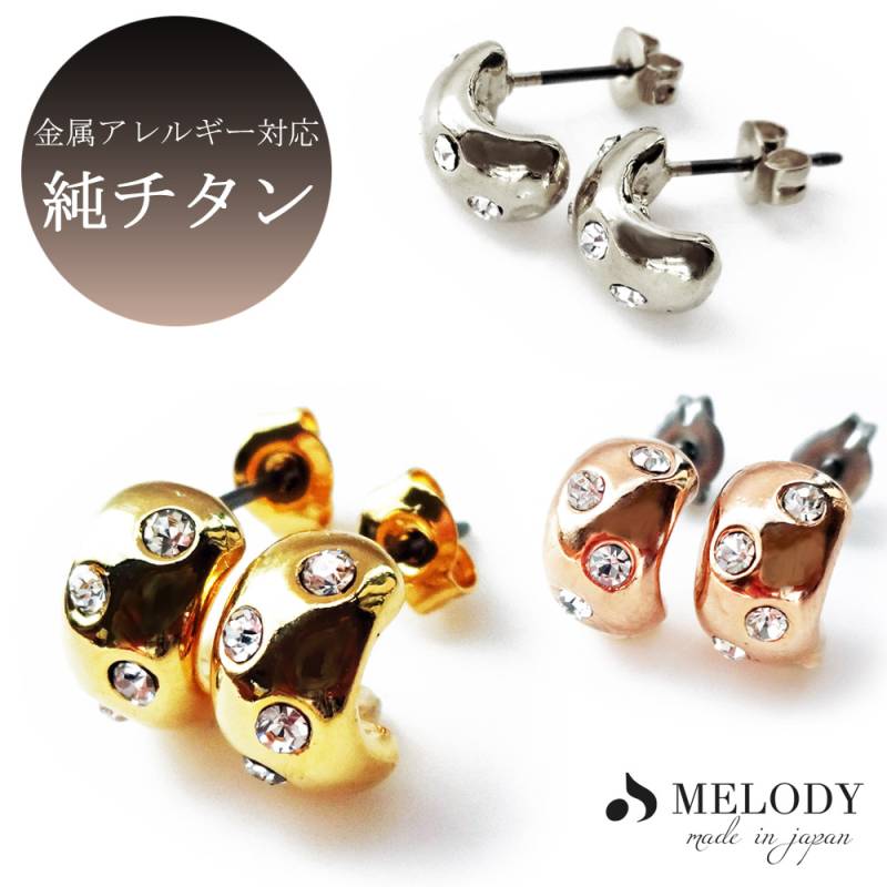 日本製 送料無料 ビジューが煌めく、ラインストーンピアス イヤリング 純チタンポスト