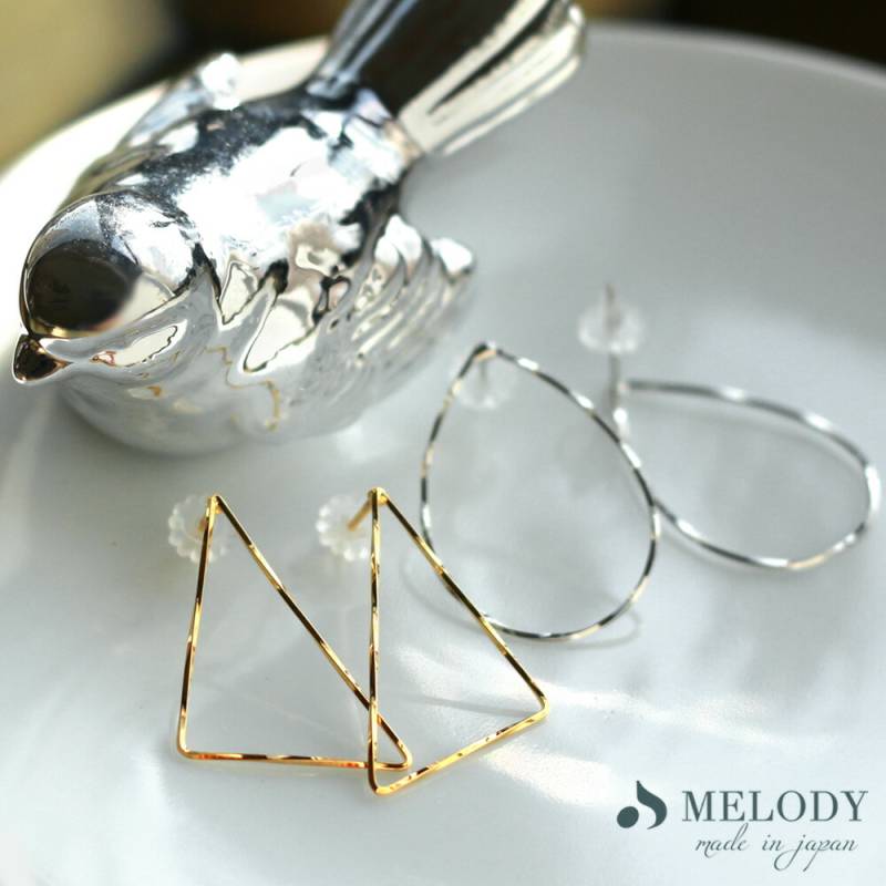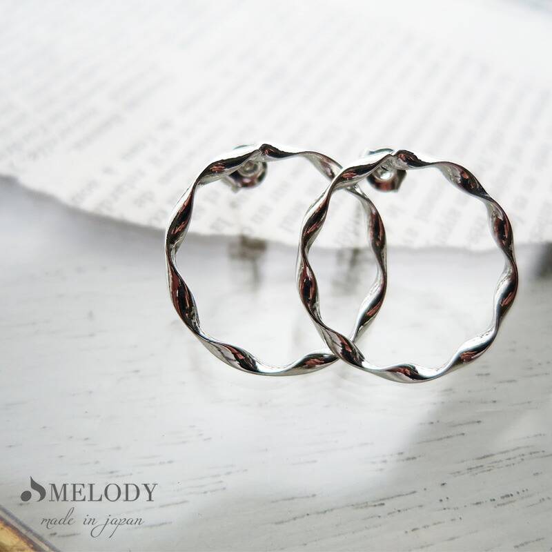 送料無料 日本製 ツイストワイヤーが描くフレームデザインピアスイヤリング