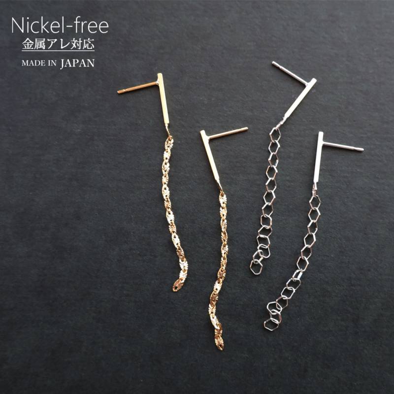 日本製 ピアス 金属アレルギー対応 エクレアチェーン ヘキサゴンチェーン ペタルチェーン