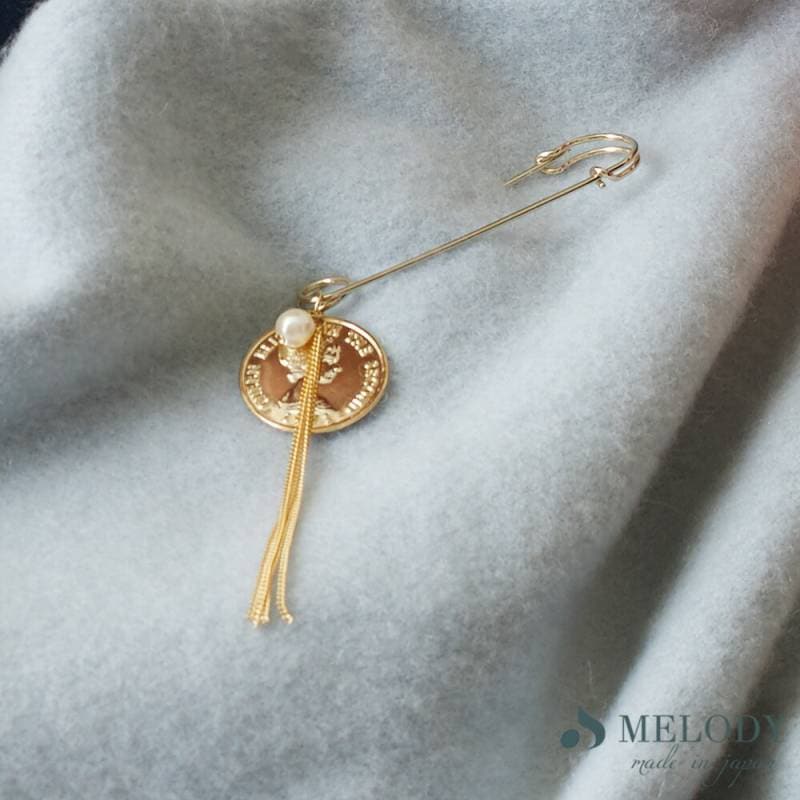 送料無料 日本製 束チェーンと1粒パールが揺れるコインショールピン