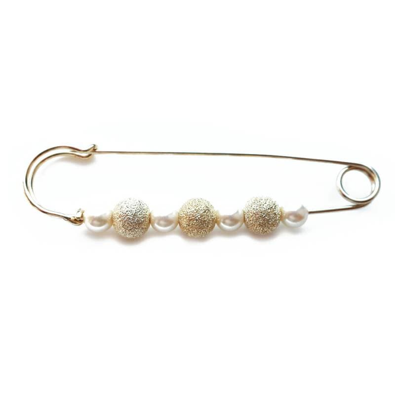 送料無料 日本製コットンパール ショールピン ブローチ キルトピン K18 ストールピン