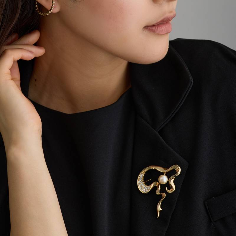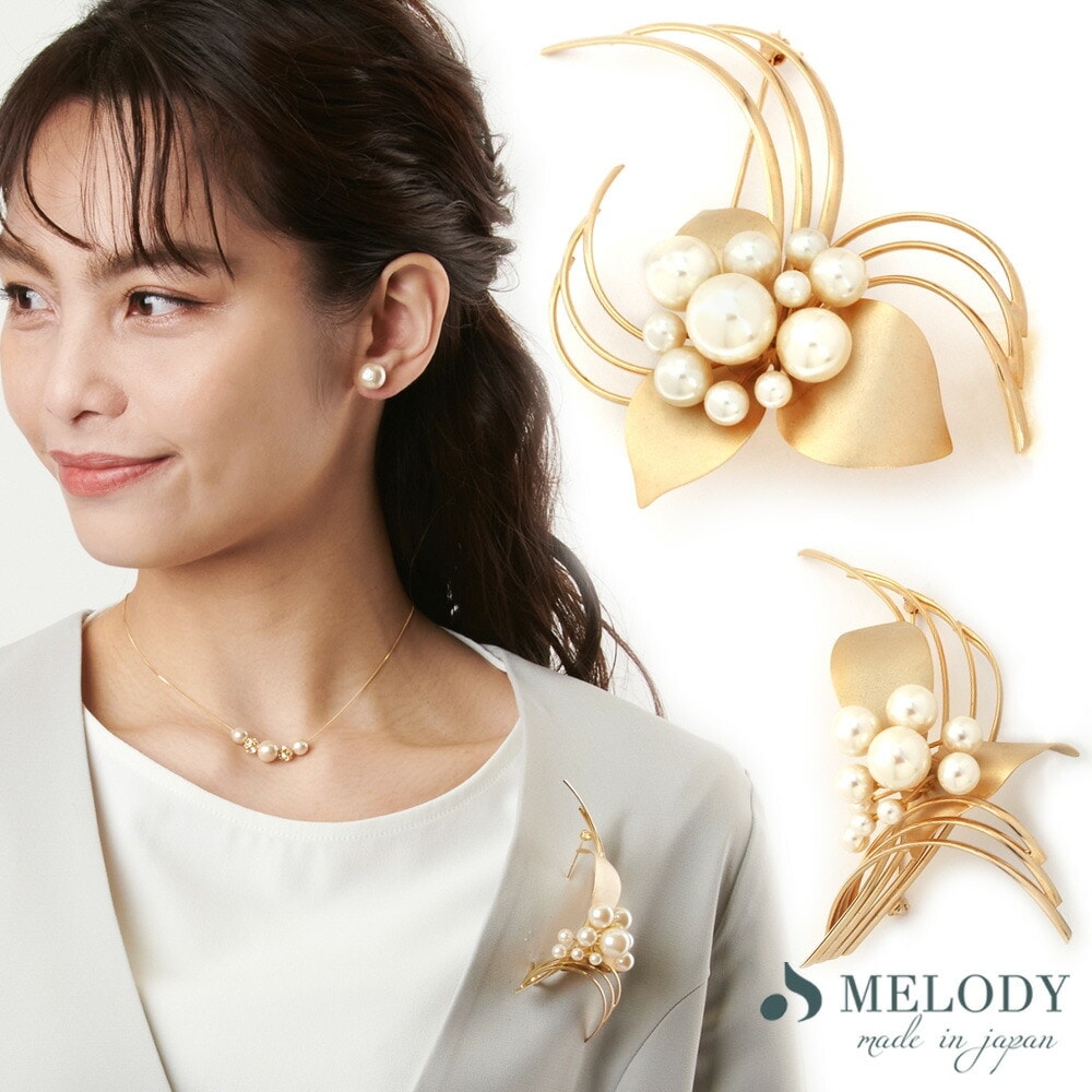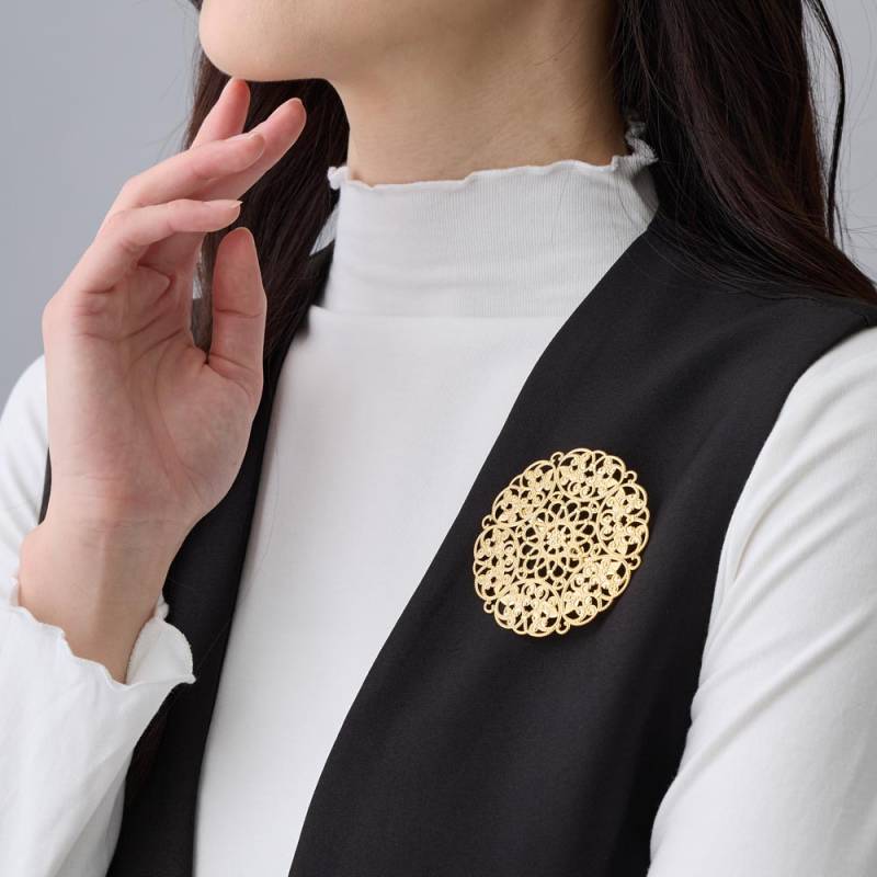 送料無料 「日本製らしい仕上がり」エレガントに飾る、特別な日のためのゴールドトーンブローチ