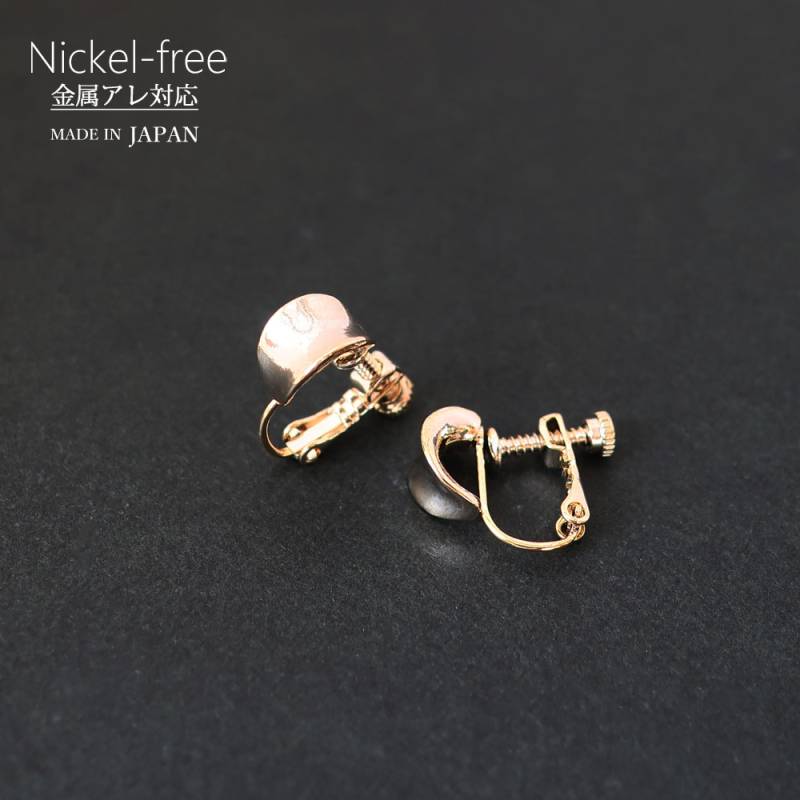日本製 金属アレルギー対応 ネジバネ式 地金 カーブ イヤリング K18GP