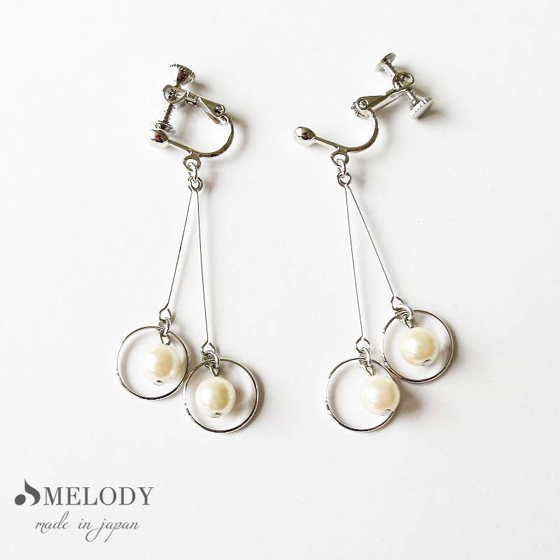 日本製 Pearl long chain swing earrings