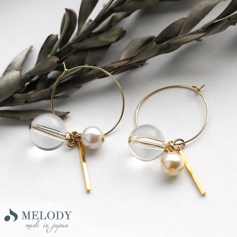 日本製 ビジューフープ キャッチレスピアス/イヤリング 樹脂カバー付き