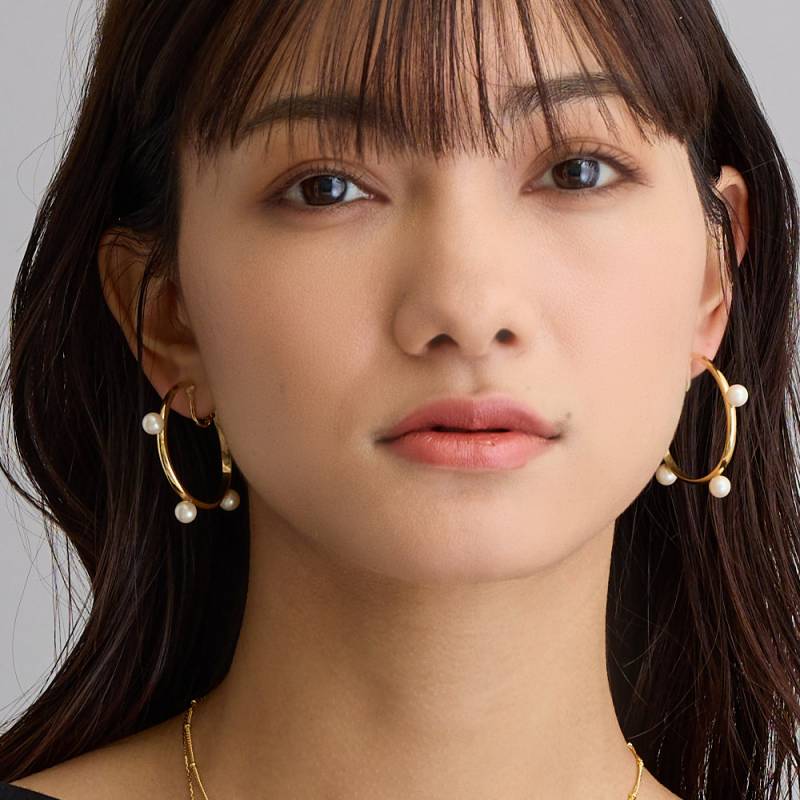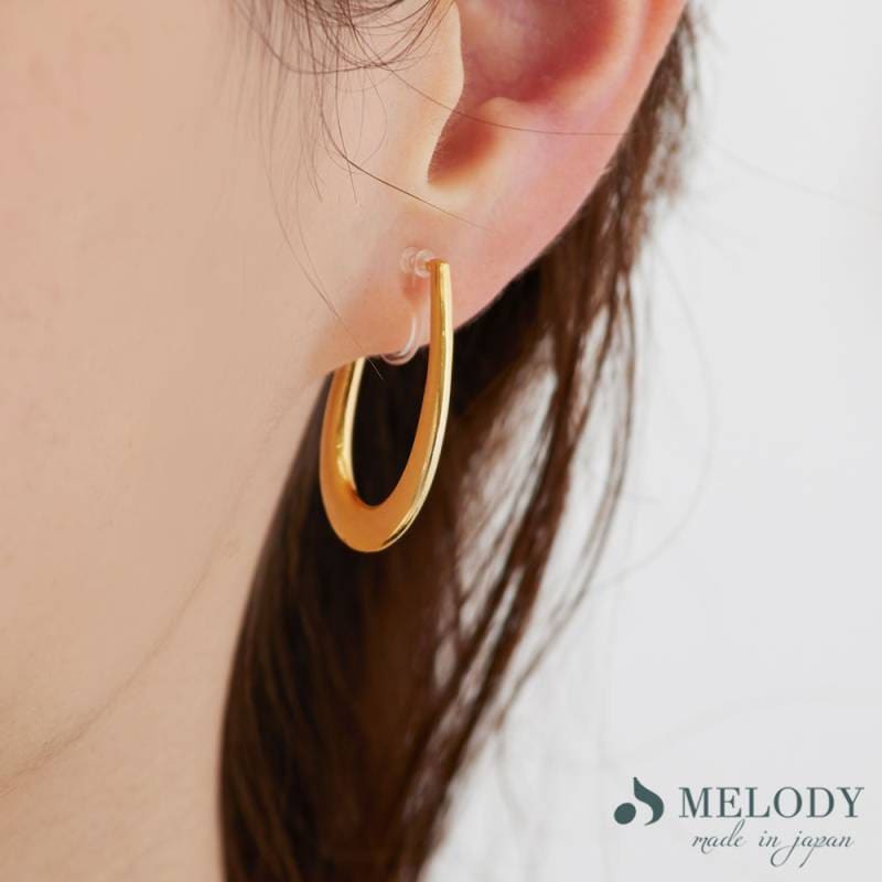 日本製 ニュアンス フープ ピアス イヤリング ノンホールピアス