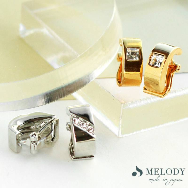 日本製 クリップ式 樹脂カバー付き ビジュー ストーンイヤリング