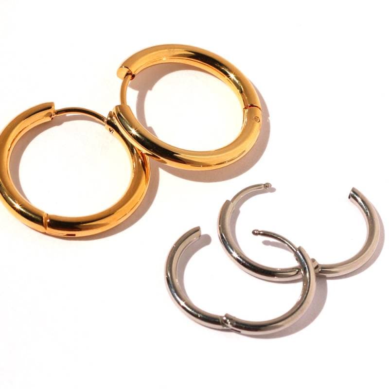 日本製 小ぶりフープ イヤリング ノンホールピアス キャッチレスピアス
