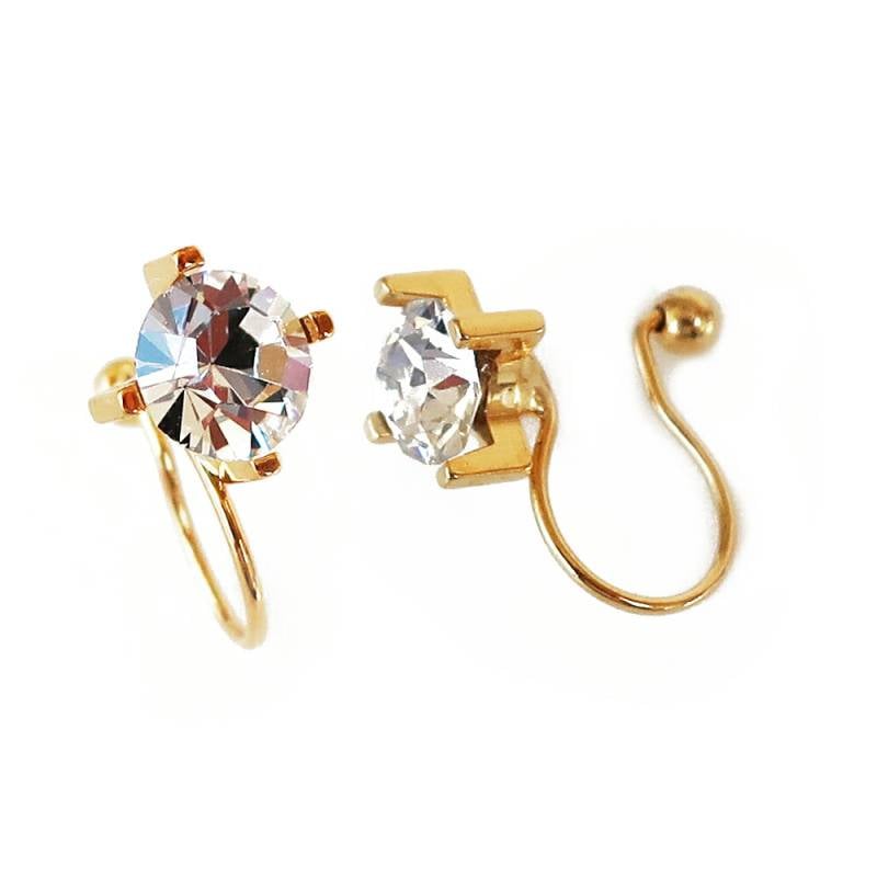 イヤリング 6mm 1粒 キュービックジルコニア ニッケルフリー イヤリング 大 クリップイヤリング 結婚式 オフィス レディース フォーマル ゴールド シルバー 金属アレルギー 春