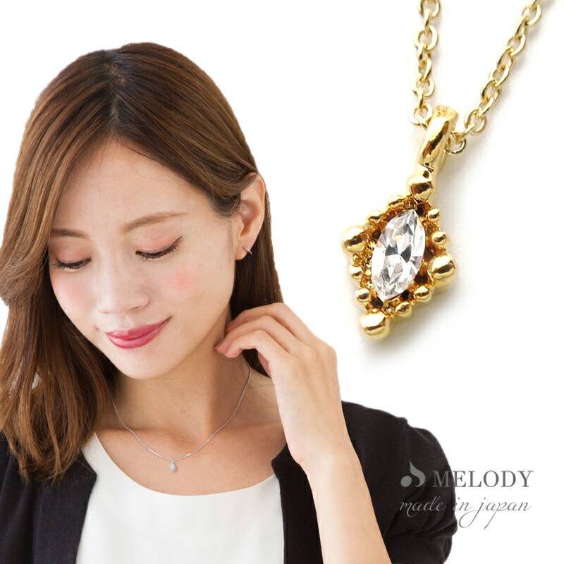 送料無料 日本製 1粒ストーンがデコルテきれい魅せにぴったりのネックレス