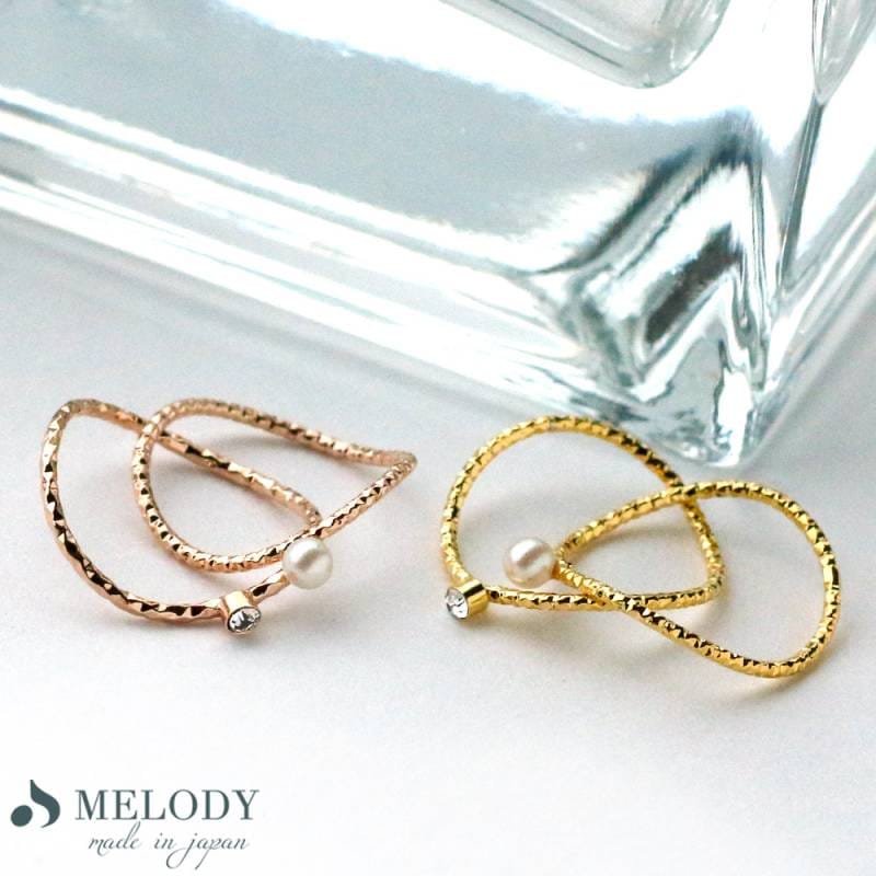 送料無料 リング セット パール ラインストーン 1粒 ニッケルフリー カッティング スターダスト加工