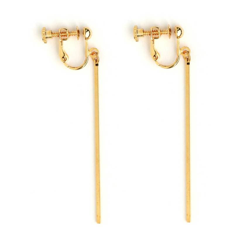 日本製 ハンギング イヤリング ノンホールピアス パール ストーン バー