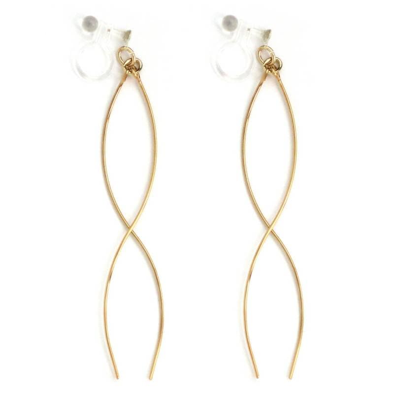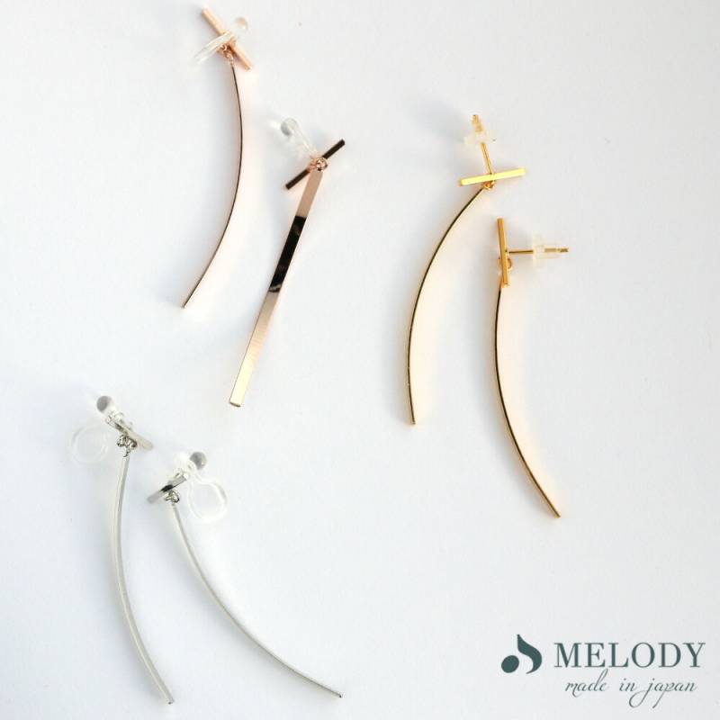 日本製 カーブ ライン イヤリング ピアス K18GP 金属アレルギー対応