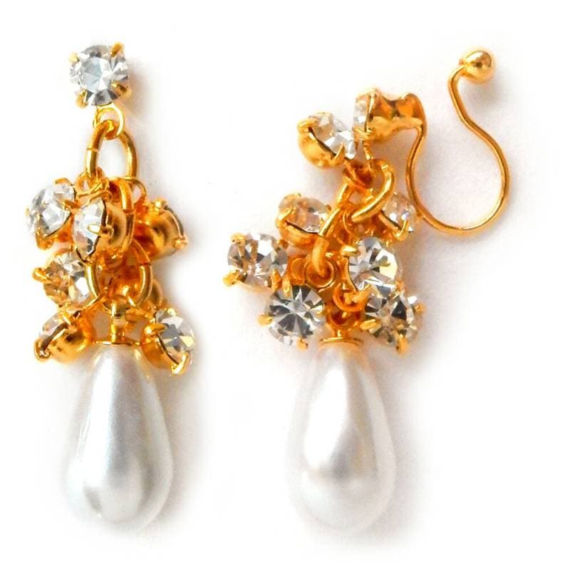 ラインストーン/パール&バックチェーンのノンホールイヤリング・ピアス