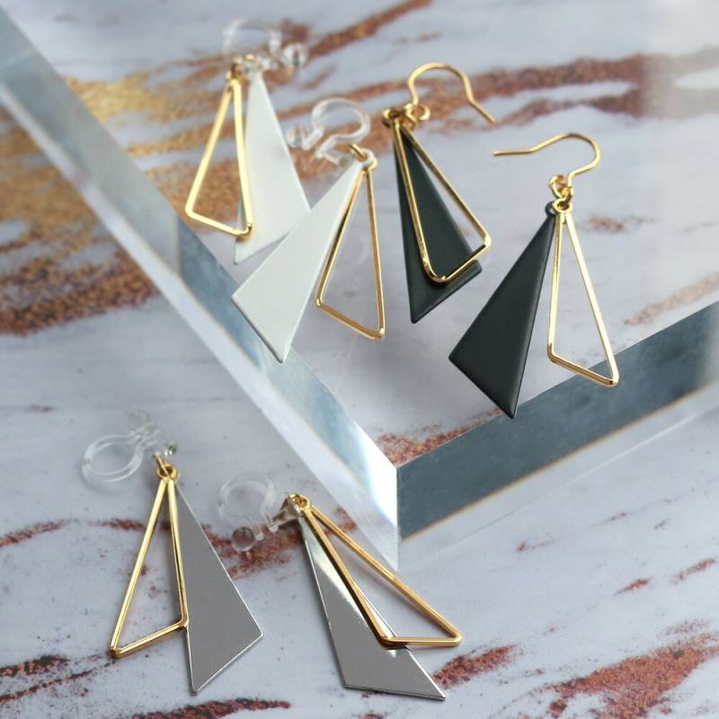 送料無料 日本製 コントラストを楽しむ、バイカラープレートのピアスイヤリング