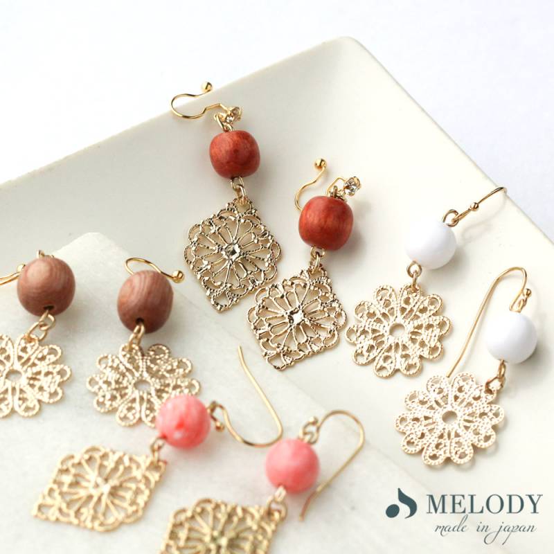 送料無料 日本製 軽やか透かしシェイプ&ビーズのスイングピアス/イヤリング ee
