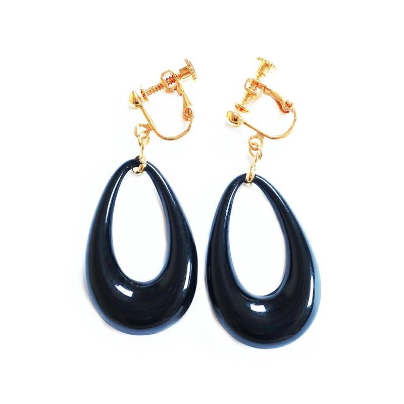 日本製 樹脂カバー付き ダイヤカットの大ぶりドロップモチーフピアス/イヤリング