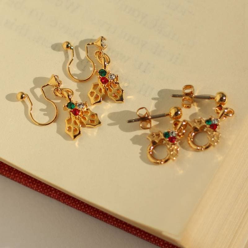 送料無料 日本製 クリスマスムード満点な、プチモチーフピアス/イヤリング