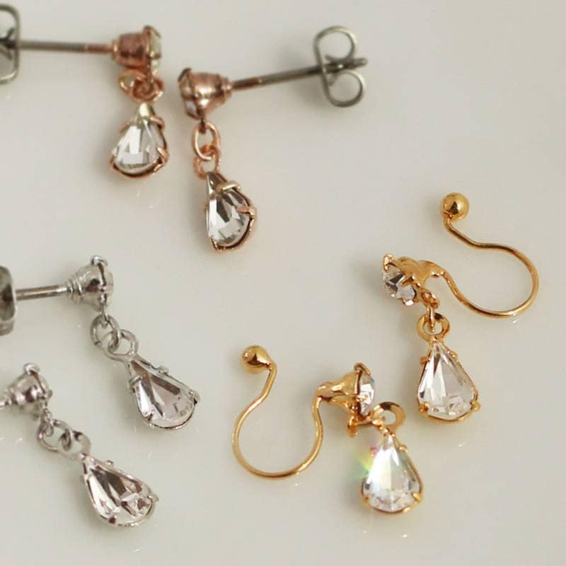 送料無料日本製 1石ビジューが愛らしく揺れるドロップピアス/イヤリング