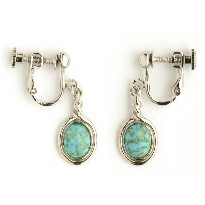 日本製 イヤリング ピアス ターコイズ ネジバネ式 樹脂キャップ付き