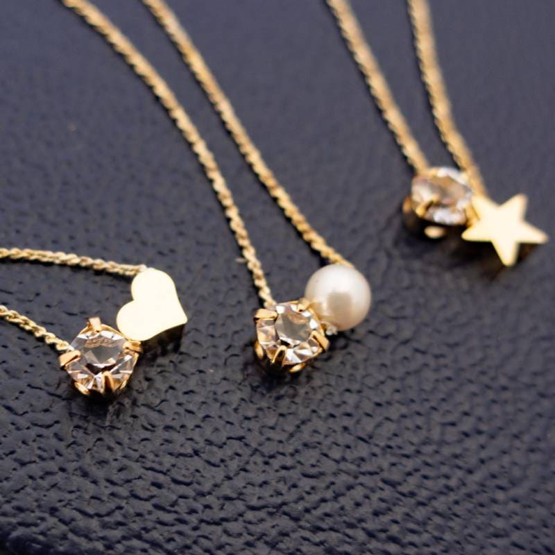 日本製 ニッケルフリーパヴェ ハート/スター/ムーンネックレス