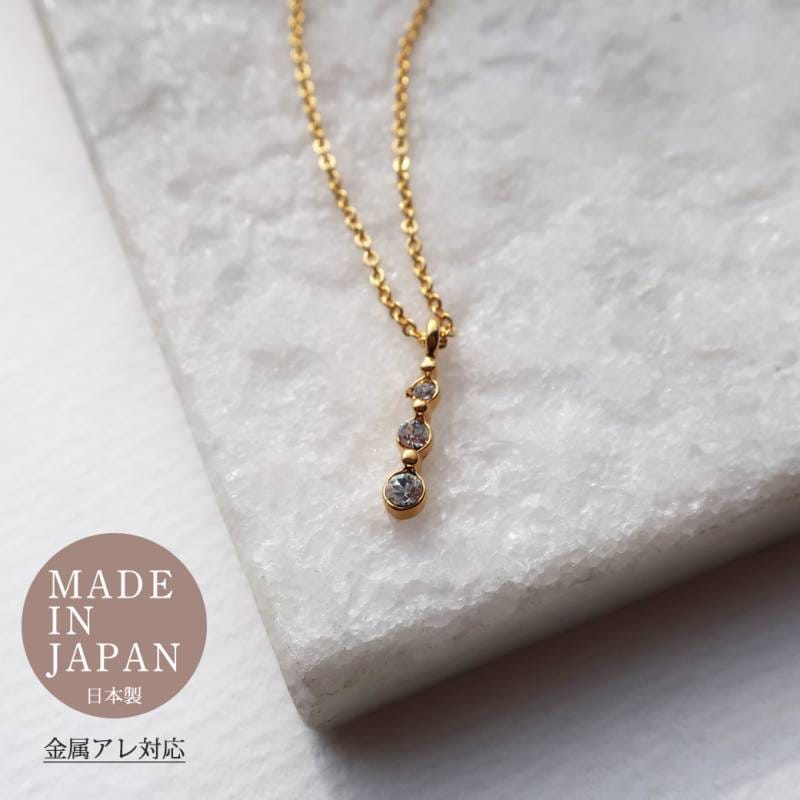 日本製 ネックレス 3粒 トリニティ レディースK18GP 金属アレルギー対応