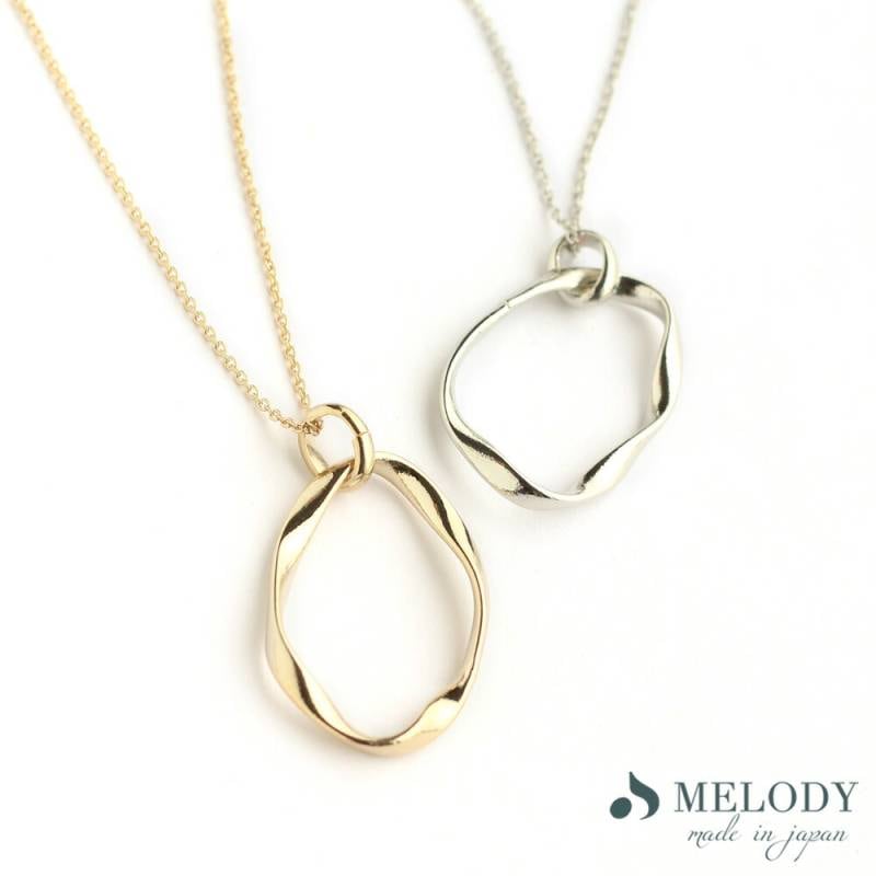 日本製 ぷっくりツイストフォルムのフープモチーフ ネックレス