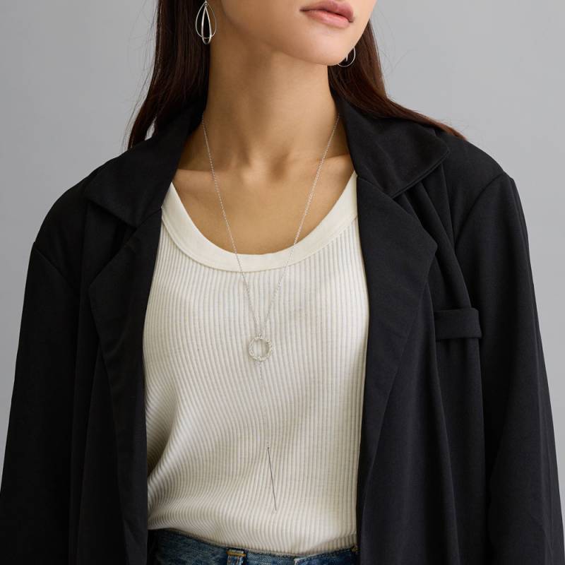 送料無料 日本製 モードなワンポイントのオーバルロングネックレス