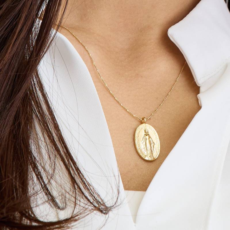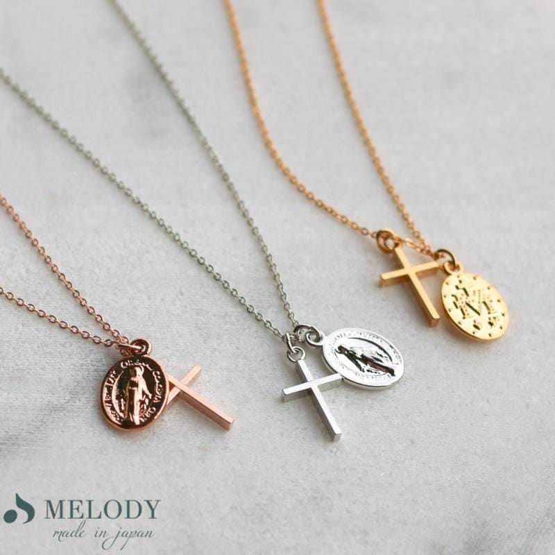 日本製 ロングネックレス 2連ネックレス コイン メダイユ ケネディ マリア像 ベネチアンチェーン