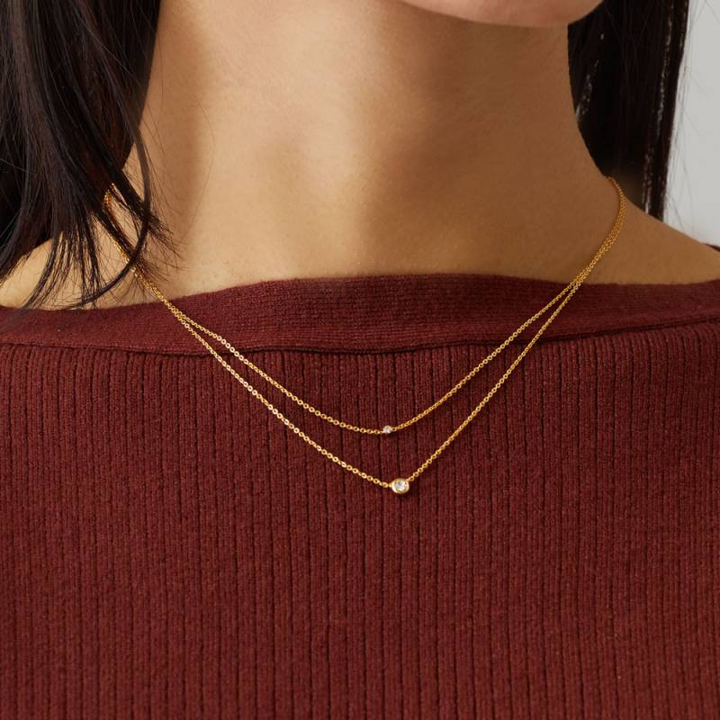 日本製 おしゃれ 重ねづけ風 2連ネックレス コイン ラインストーン スキンジュエリー