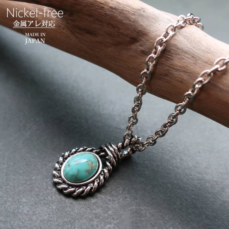日本製 ネックレス ターコイズ トルコ石 天然石 ロープラウンド