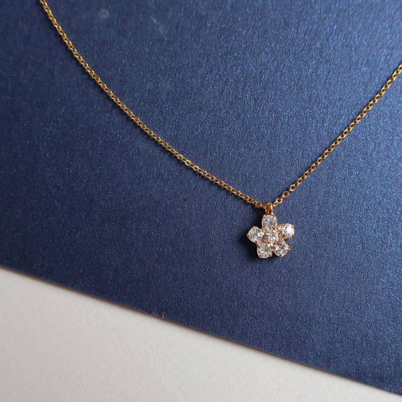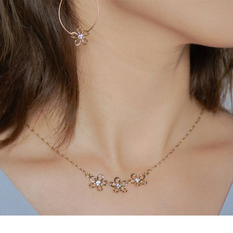 送料無料 日本製 6石 パヴェ フラワーネックレス レディース