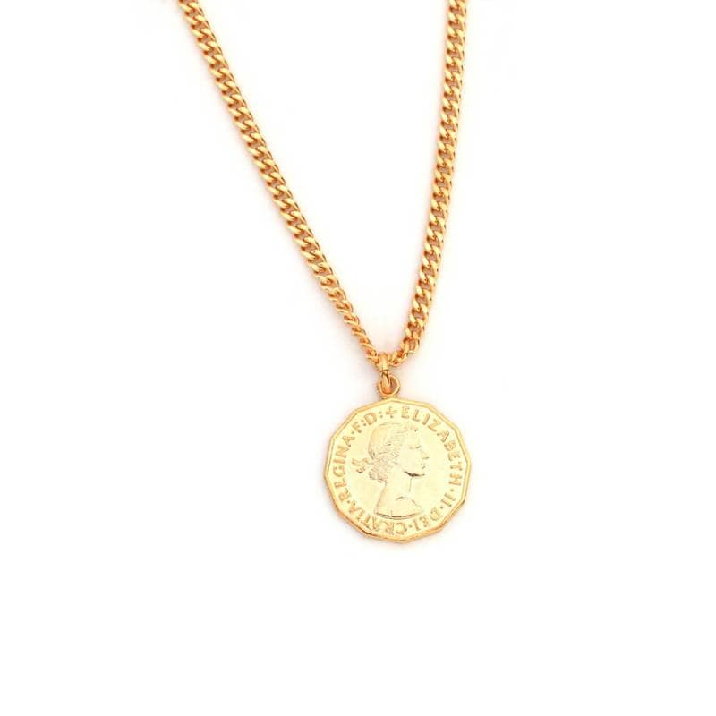 送料無料 日本製 3ペンスコインモチーフのシンプルネックレス