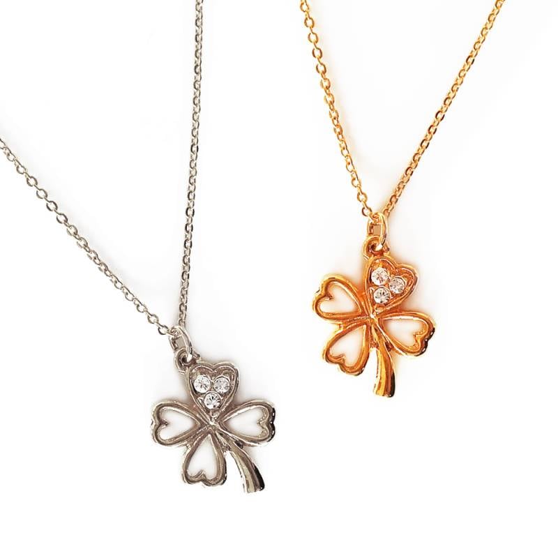 ネックレス 4color クローバー ラインストーン ロング ペンダント 四つ葉 ゴールド シルバー ブランド チェーン おしゃれ レディース 春