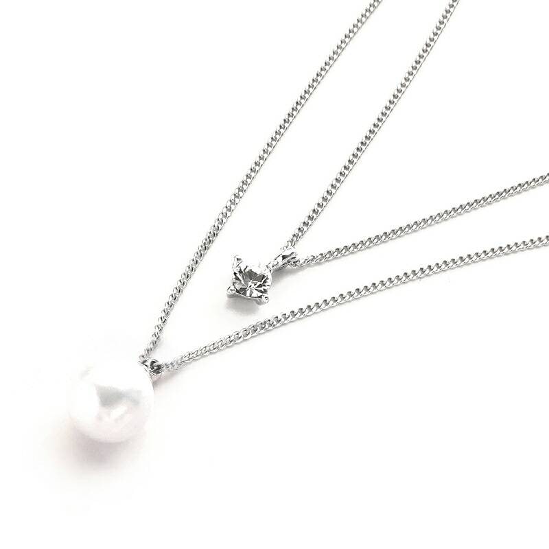 ネックレス Wストーン 2連 ショート 重ねづけ レディース オフィス ラインストーン ゴールド シルバー ブランド チェーン おしゃれ 春 プレゼント 夏