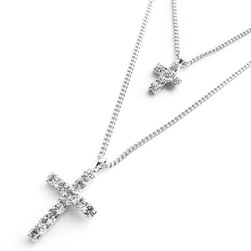 日本製 2連ネックレス ラインストーン プレシオサ クロス 十字架