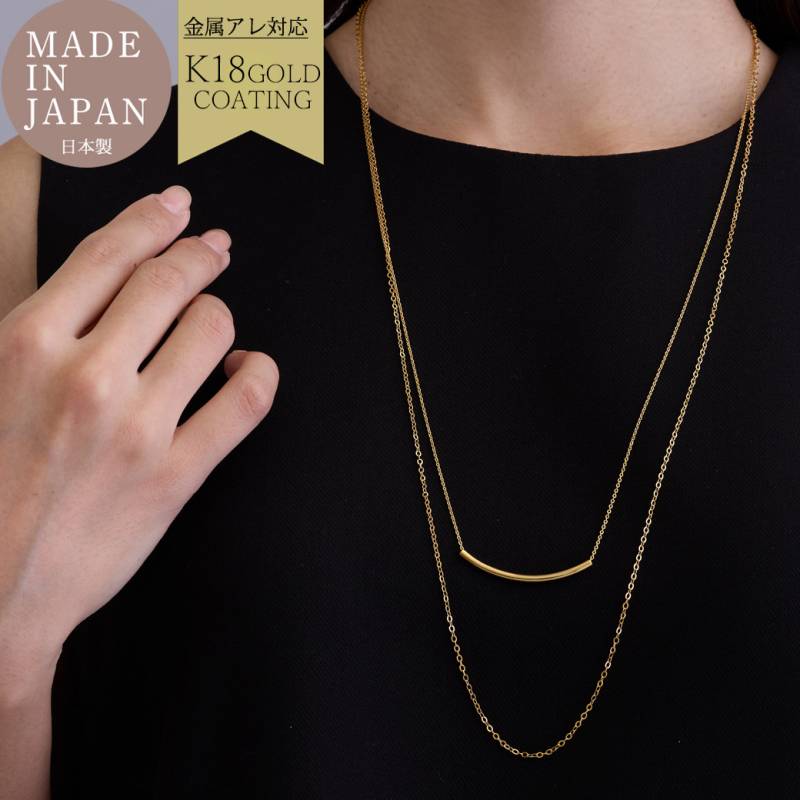 日本製 おしゃれ 重ねづけ風 2連ネックレス オープンハート