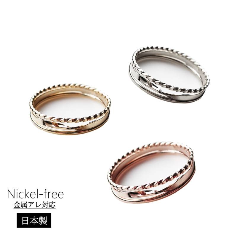 日本製 指輪 異なるライン レイヤード風 13号 リング 金属アレルギー