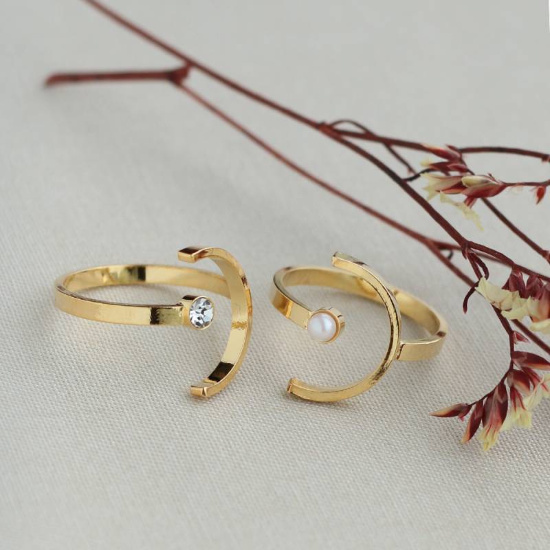 送料無料 日本製 三日月フォルムが優美且つ、手元に存在感を与える2タイプリング