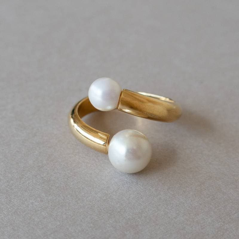 送料無料 パールを飾ったゴールドが美しい フォークパールリング