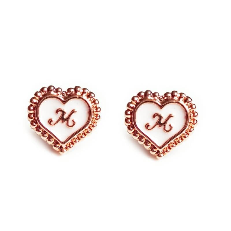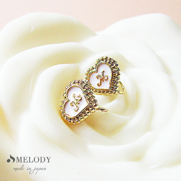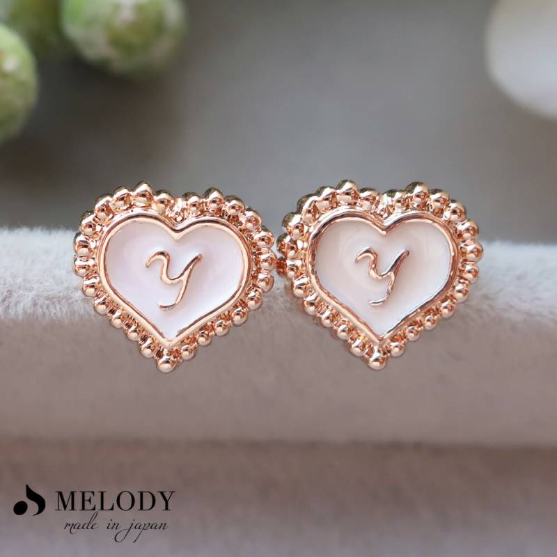 日本製 送料無料 イニシャル ハート ノンホールピアス ピンクゴールド