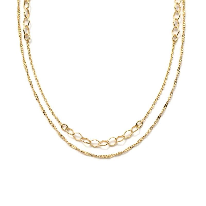 日本製 金属アレルギー対応 ヘキサゴンチェーン 2連アンクレット
