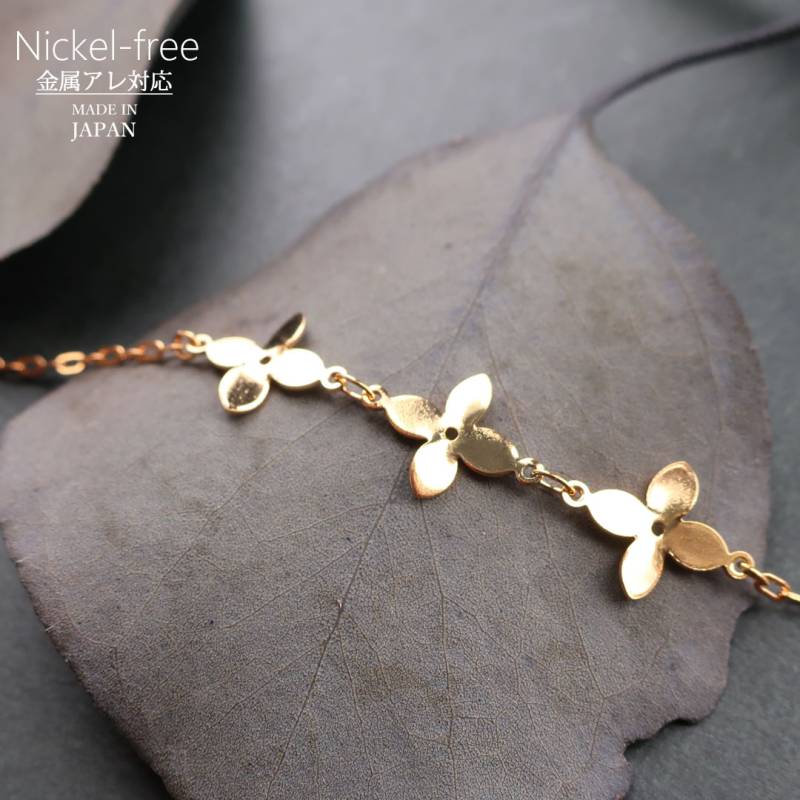 日本製 ふんわり上品 3連メタルフラワーモチーフアンクレット