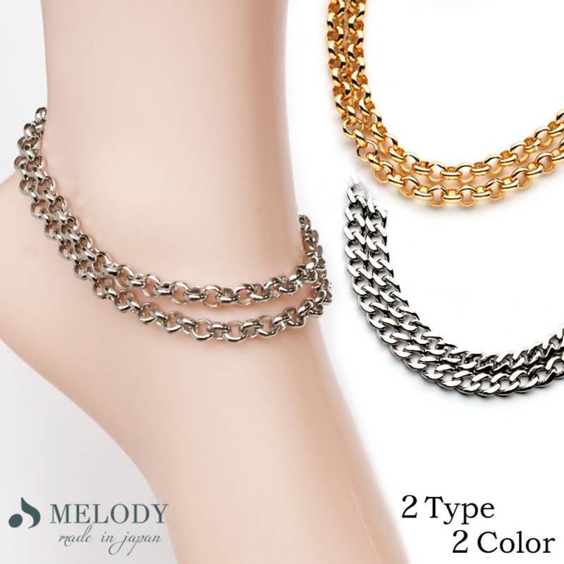 送料無料 日本製 足元コーデを楽しむ2連 チェーン アンクレット